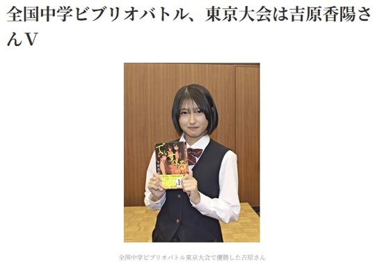 全国中学ビブリオバトル、東京大会は吉原香陽さんV ~読売新聞 教育ネットワーク【外部リンク】