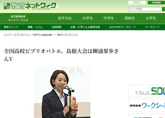 全国高校ビブリオバトル、島根大会は柳浦果歩さんV ~読売新聞 教育ネットワーク【外部リンク】