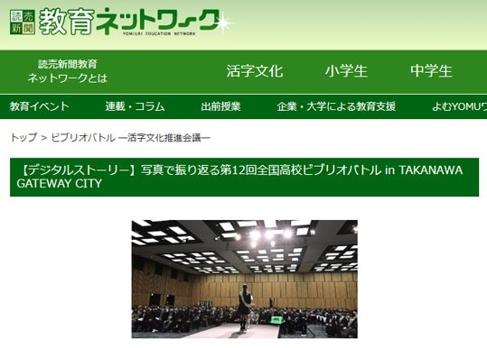 デジタルストーリー 写真で振り返る第12回全国高校ビブリオバトル in TAKANAWA GATEWAY CITY ~読売新聞 教育ネットワーク【外部リンク】