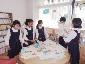 委員会は月に1回あり、新しく貸出開始の本や、好きな本を紹介するポップを作ったり、短大や中高の図書館の見学をしたりしています。