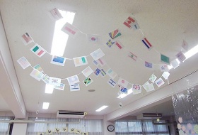 9月には運動会があります。夏休み明けから子ども達は運動会にむけ一生懸命がんばっています。図書館も万国旗で運動会ムードを盛り上げます。