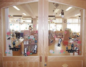 10月30日の仲良しタイムに本をかりて「トリックオアトリート」と合言葉を言うと聖母図書館オリジナルしおりがもらえます。チャイムとともに長蛇の列が!