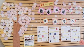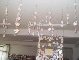 紹介したい本を子ども達から募集しました。「ちょっと難しいかな?」と心配しましたが子ども達はいろんな本のお気に入りのフレーズを桜の花びらに書いて6年生に言葉のプレゼントをしました。