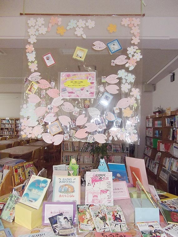3月、4月は卒業、入学のシーズンなので桜のディスプレイです。