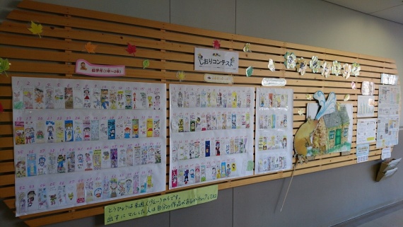 掲示板では、読書週間中に募集した“しおりコンテスト”の応募作品を展示しています。