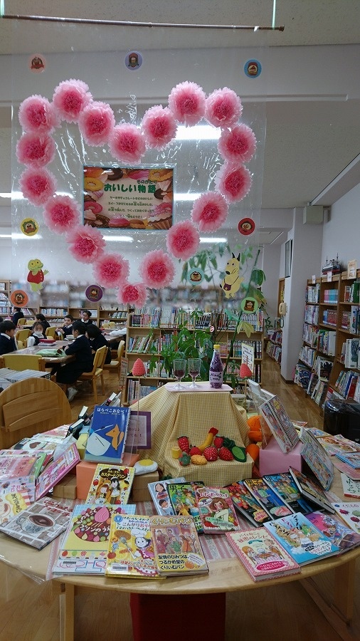 お菓子がでてくる本は表紙もカラフルでとてもかわいい本が多いので展示台の