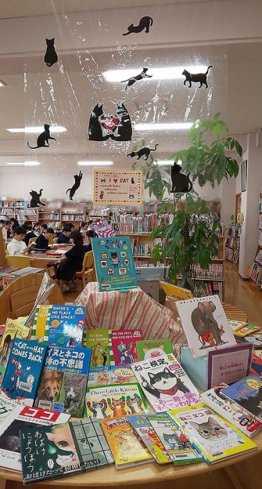 ネコのでてくる絵本やネコの図鑑や写真集などを集めました。かわいいネコの絵や写真にネコ好きでなかった子ども達も立ち止まり本を手に取って見ていました。ネコの魅力はすごいですね。