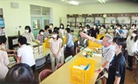 55号で予告しました長崎市教委主催による「学校図書館手づくり改修法」の研修会が実施されました。司書全員36名に担当の先生方もいれると実習だと1回ではむりということで2回に分けられました。