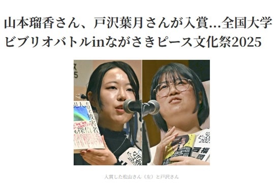 山本瑠香さん、戸沢葉月さんが入賞...全国大学ビブリオバトルinながさきピース文化祭2025 ~読売新聞 教育ネットワーク【外部リンク】