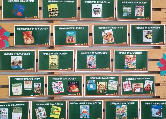 掲示板の左には秋の読書週間の先生のおはなし会の時に読んでもらった本を紹介しました。