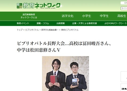 ゲストに宮部みゆきさん登場【観覧者募集中】第12回全国高校ビブリオバトル、2026年2月8日に東京・高輪で ~読売新聞 教育ネットワーク【外部リンク】