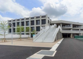 新校舎は鉄筋コンクリート造り3階建てで、津波による被害を想定して1階部分を主に駐車場とした吹き抜け構造となっています。屋外階段を使って直接階上に上がることができ、家庭科室と隣接した「みなとホール」は緊急時には一時避難所としても利用できます。