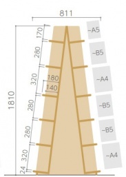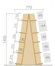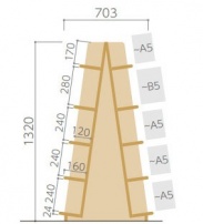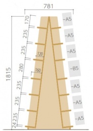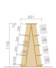 ■ 全段8度で傾斜しているので倒れにくく本も落ちにくくなっています。