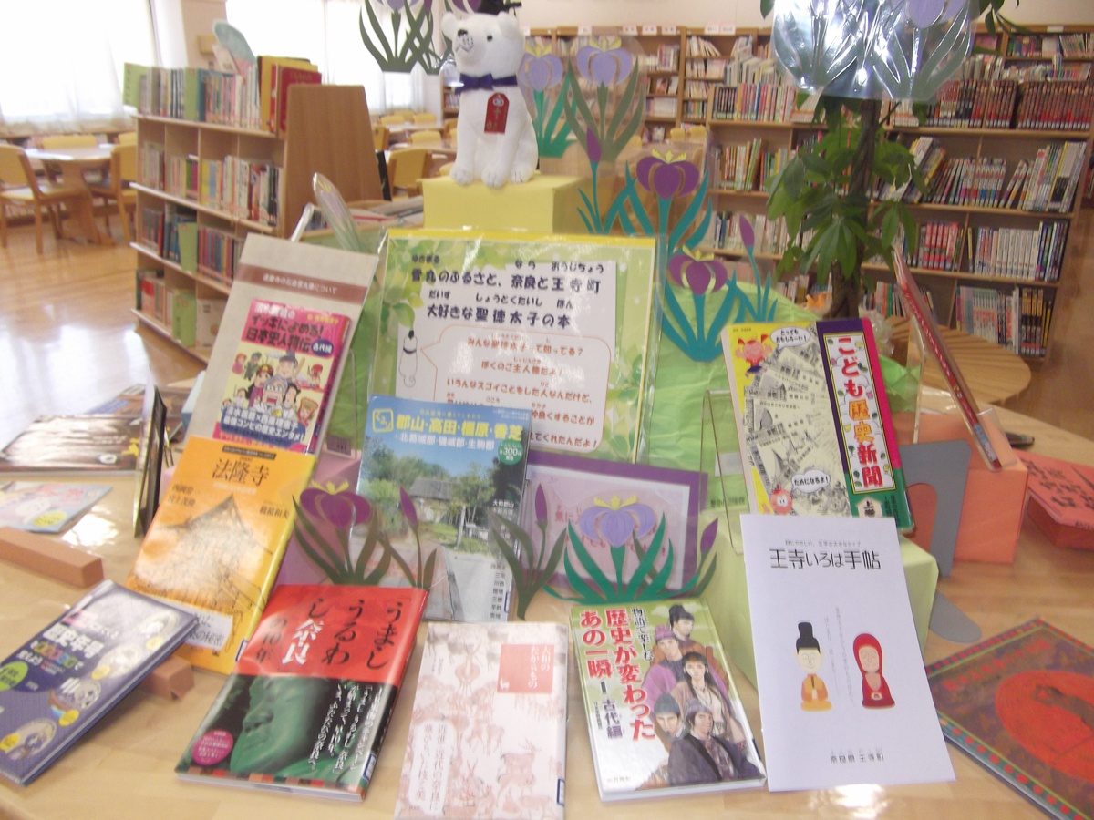 展示台には雪丸にちなみ、王子町、奈良や聖徳太子に関する本を集めました。