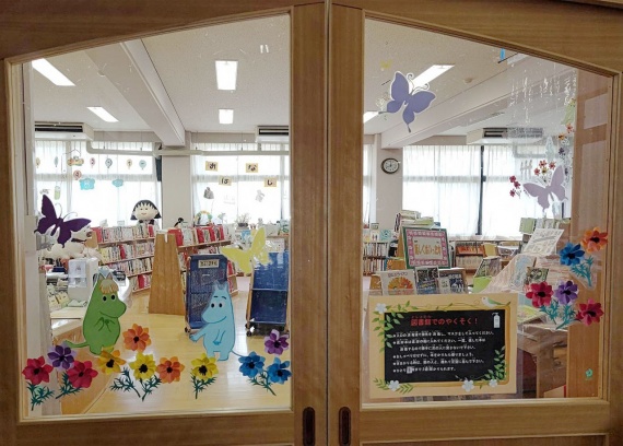 アネモネの花畑にムーミンたちを ~京都聖母学院小学校 令和4年3月の展示報告