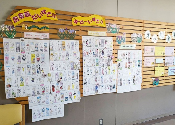 掲示板には春の読書週間で募集したしおりコンテストを掲示しました。