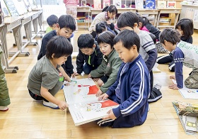 いなべ市の小学生は、1年生で紙芝居を用いた道徳や生活習慣の習得、3年生には国語辞典や漢和辞典の使い方の習得など、授業を通して図書を教材にする機会が多々あります。また、小学校に入学後は朝学習の時間に読書をする学級も多く、地域の方の協力による低学年向けの読み聞かせの機会もあり、幼少期より積極的に本に親しむ取り組みがなされています。そして高学年になると「未来いなべ科」という総合学習が始まり、米作りをはじめ多彩な体験学習が実施されます。6年生では修学旅行の予習もあり、調べ学習のために図書館を利用する機会が増えていきます。