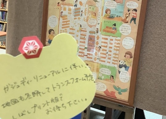 整備検討会では、地域への「メディアセンター」開放、ボランティアによる読み聞かせや見守りなど、さまざまな活用イメージが出されました。地域支援室を「メディアセンター」の近くにという意見も出たほど、地域にとっても大事な存在です。支援室には、地域の方や学校の先生方が自由に協力者の募集ができるよう、ホワイトボードが置かれています。支援活動は始まったばかりですが、すでに、「メディアセンター」で自習する子どもの見守りボランティアなどの活動が始まっています。