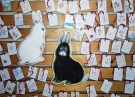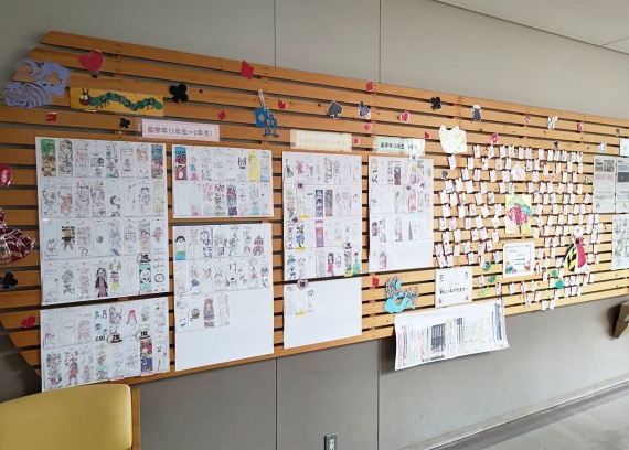 掲示板の切り絵はうさぎにちなんで『不思議の国のアリス』です。