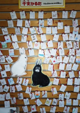 “うさぎ”“うし”“うま”はやめてねと言ったのですが、掲示板にはったあとはしおりになるのでかわいいうさぎの絵をかく児童も多くいました。