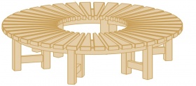 木目のはっきりした、色調もあたたかいパイン材を使っています。ドーナツ型のベンチには観葉植物もぜひ。