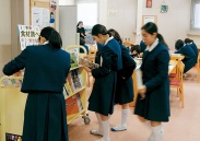 中学二年生後期後半、家庭科の授業。図書館で、約200冊の資料から、食材について調べる。資料を求めて席を立つ生徒の姿が印象的だ。