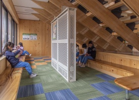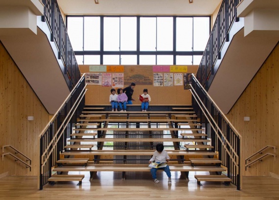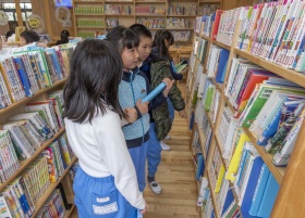 いなべ市立笠間小学校は2018年春に新しい校舎が完成し、木の温もりを感じさせる明るい環境での学校生活がはじまっています。同市は「いなべ市子ども読書活動推進計画」に基づいて読書活動を推進しており、各小中学校でも読書活動が活発に行なわれています。笠間小学校の新しい図書館は、学校の中心となっている吹き抜け空間「だんだんホール」と連動して活用するように考えられており、子どもと本がふれ合う機会が多くなることが期待されています。