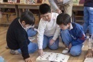 先生が1冊の本を読んで聞かせた後は、みんなそれぞれに好きな本を手にとって、思いおもいの場所で本を読んでいます。