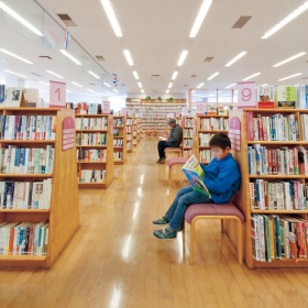 そして、あふれるように配架された本に読書意欲が喚起される。開館時、3万6千冊だった蔵書数は、9万冊の予定を超え、現在、12万冊弱にまで膨らみ、市民の読書要求に応え続けている。