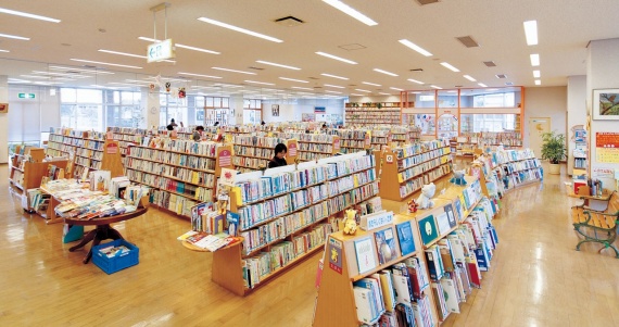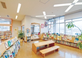 日曜日のおだやかな午後、本を手に思い思いの時間を過ごす親子。暮らしの中に図書館がとけ込んだ、自然な情景が広がっていた。