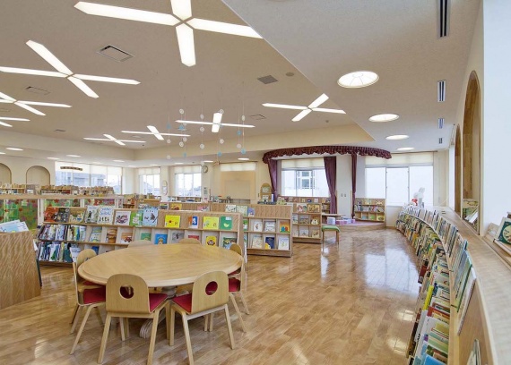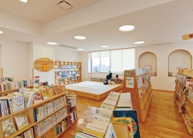こうして、1階に落ち着いた一般のエリア、2階に、親子が楽しめる活気のあるエリアといった大きなゾーニングが行われる。開架の収容冊数は6万冊が確保された。