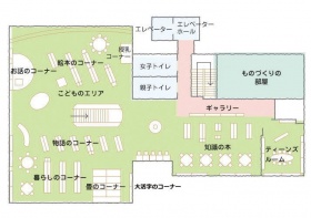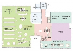図書館のほか、「アリーナ」が「多目的ホール」へ、「保健センター」が「子育て交流センター」へとリニューアルされ、「こぢんまりとして、くつろげる」という意味の方言で「であいの広場こっぽーっと」と名付けられた。
