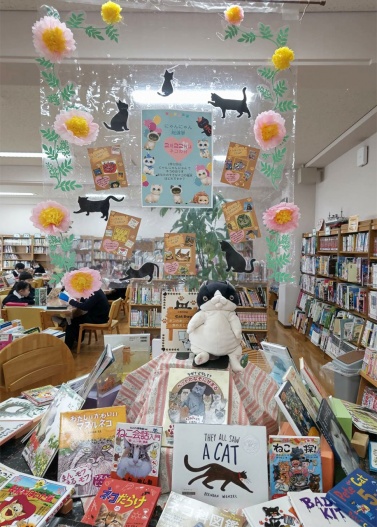 2月22日は「にゃんにゃんにゃん」でネコの日です。2月の図書館はネコの本をいっぱいあつめ「にゃんにゃん総選挙」も企画しています。ネコの本はいっぱいあります!