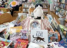ネコのでてくる絵本は物語、にゃんこ大戦争、写真集など展示台にのりきらないほどたくさんあります。こんなたくさんのネコのの中から総選挙にエントリーしたネコは…