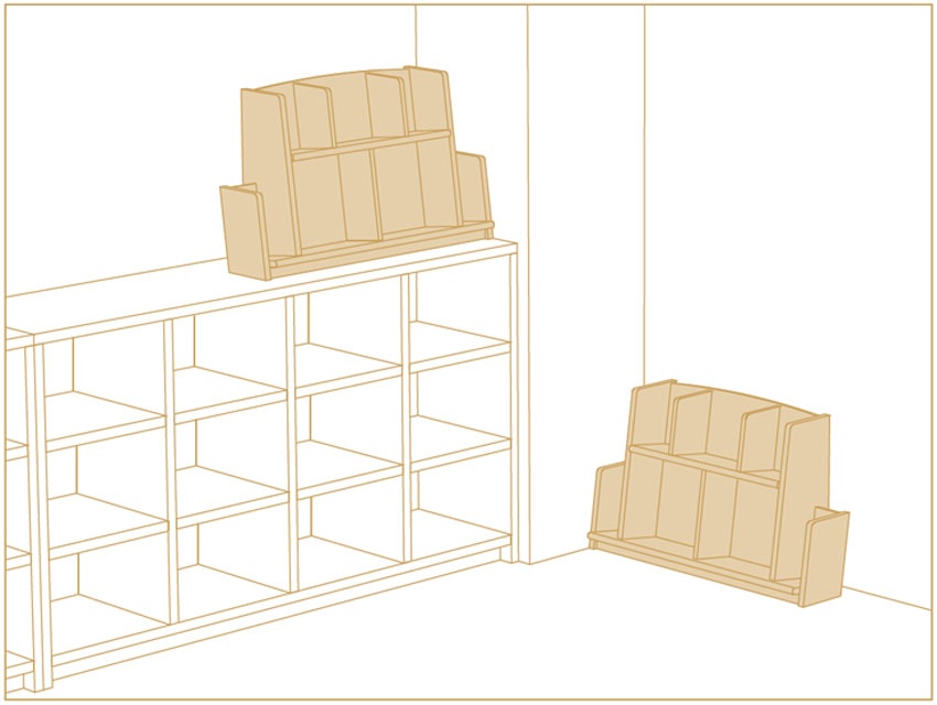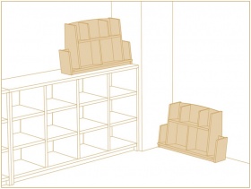 書架の天板上や棚の中、机の上などに、表紙を見せてディスプレイができます。