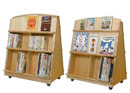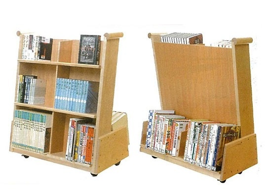 403- A、Bは、ブックトラックというより、軽快でかわいい移動展示架として設計されています。403-C、Dは事務作業に機能的です。