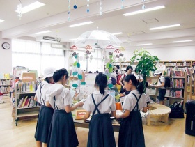 2 0 0 3 年にはこれらの活動が認められ、「全国子どもの読書活動優秀実践校」として文部科学大臣賞をいただきました。同窓会や保護者会からの支援と協力、そして学校司書の力量に依るところも大きいと思います。司書の創意工夫には、私自身いつも驚かされます。飾りつけの名人で、子どもたちを惹きつけるための楽しい工夫がいっぱいです。改修後はますますはずみがついて、活気あふれる図書館へと生まれ変わっています。