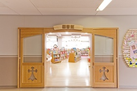 京都聖母学院小学校らしい図書館です。