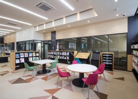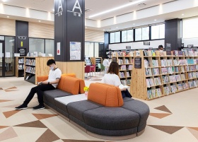 また、館内にはくつろぎながら気楽に本が読めるためのソファやイス・テーブルも随所に設置され、大人にとっても快適な知的空間を創出しています。