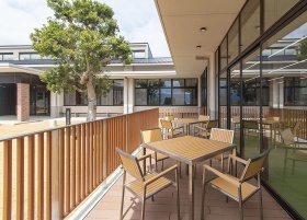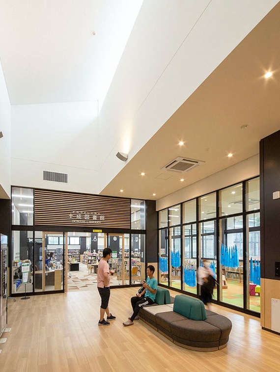 これを受け完成した複合施設は、図書館と公民館が同じフロアでつながる構造で、エントランス前のホールを共用エリアに位置付け、カフェコーナーを設置。子育て世代のための授乳室を新たに設け、おむつ交換台や調乳用の給湯器を備えました。